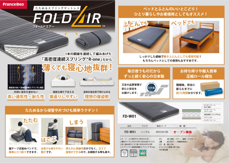 たためるスプリングマットレス フォールドエアーの価格はお問合せください。