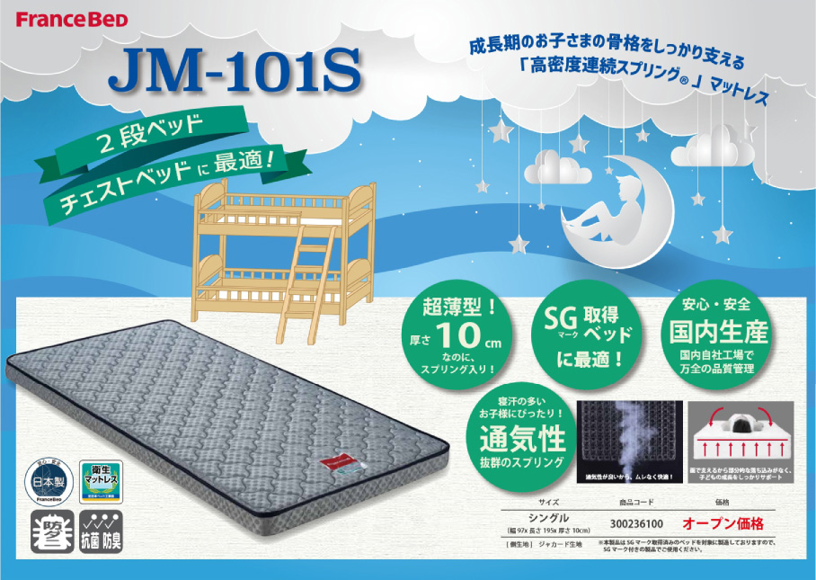 成長期のお子様の骨格をしっかり支えるマットレス JM-101Sの価格はお問合せください。