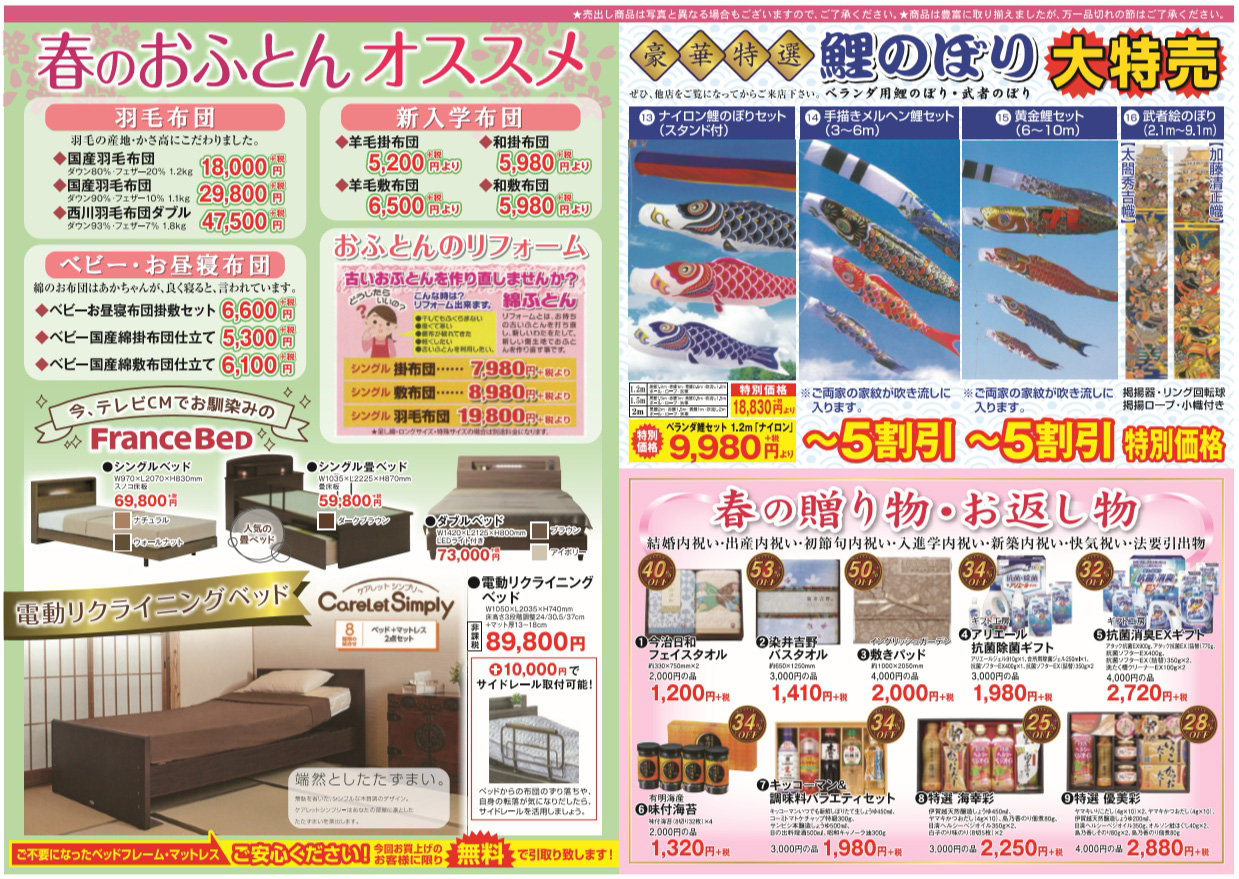 また、ご購入頂いたお客様を対象とした4大特典も大好評です。詳細は以下、店舗チラシをご確認くださいませ。